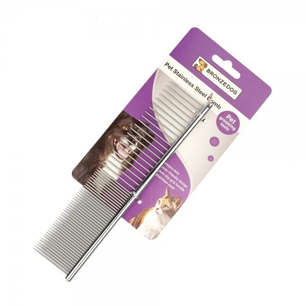 Гребінці, щітки Bronzedog Pet Stainless Stteel Comb Гребінець металевий з вузькими ти широкими зубцями 1 шт (HY20-42L)