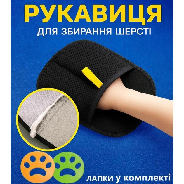 Рукавичка для збирання шерсті домашніх тварин, котів, собак