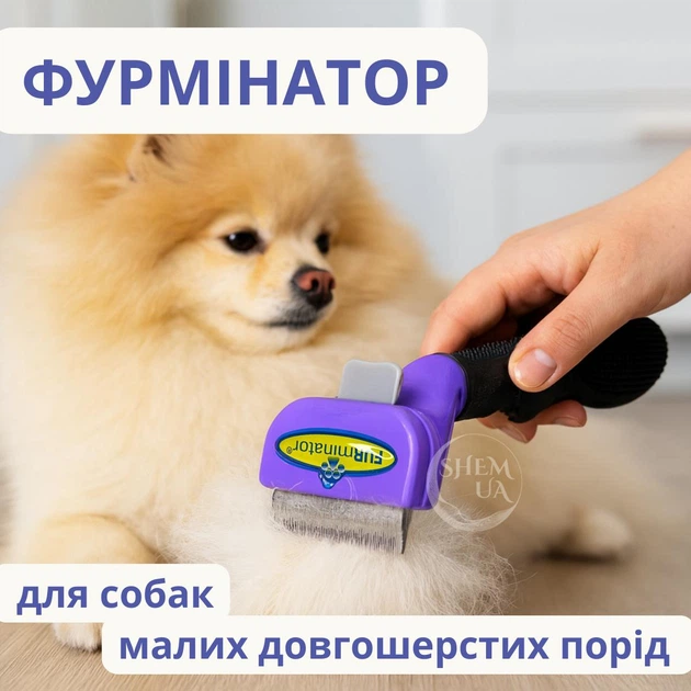 Фурмінатор для собак малих довгошерстих порід з лезом 4.5 см Furminator, гребінь для вичісування шерсті та підшерстя з кнопк