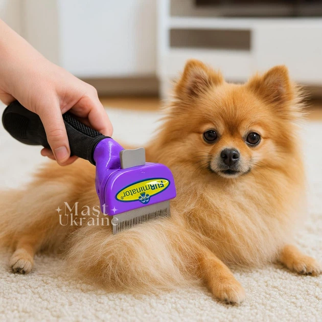 Фурмінатор для собак маленьких довгошерстих порід з лезом 4,5 см, гребінь для вичісування шерсті та підшерстя з кнопкою очищ