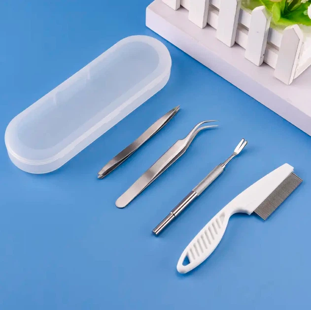 Набір металевих інструментів для видалення кліщів з тварин 4 шт. з кейсом для домашніх улюбленців
