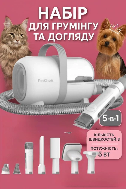 Набір для грумінгу з пилососом PetChois GV1 White, 5 в 1, для котів і собак