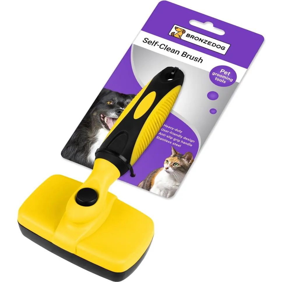 Пуходерка для собак та кішок Bronzedog для догляду за шерстю і підшерстям самоочисна 18х10 см