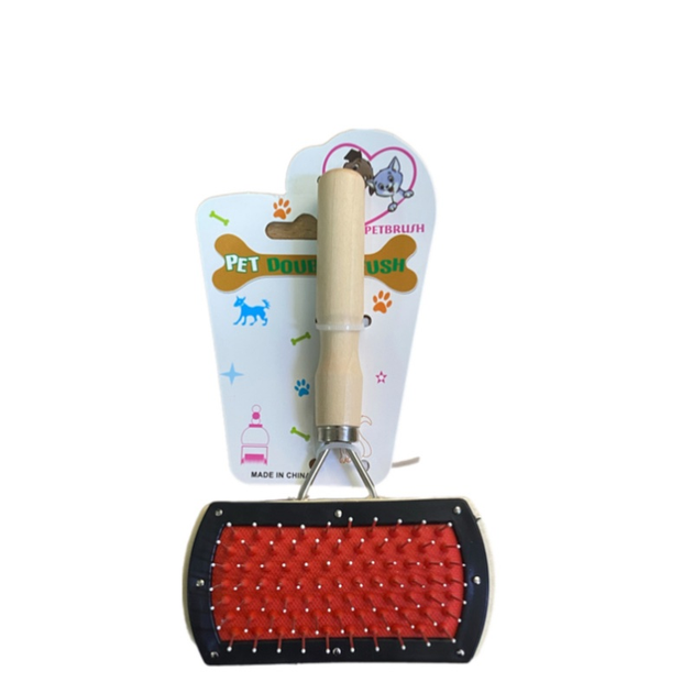 Пуходер для тварин дерев'яний двосторонній 10,5*5,5 см ручка 12 см