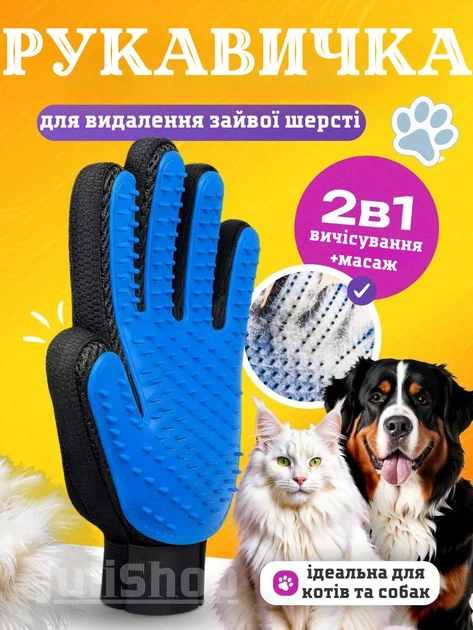 Рукавичка для котів та собак True Touch для вичісування шерсті (чорна з синім)