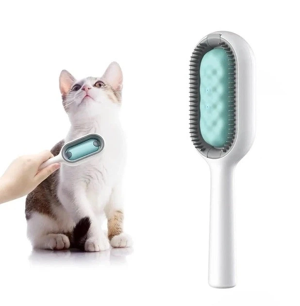 Двостороння щітка для сухого та вологого вичісування шерсті собак та котів Блакитна
