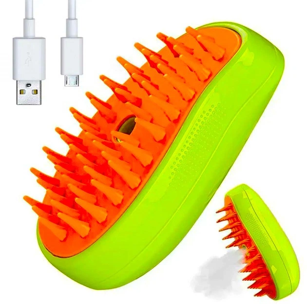 Парова масажна щітка для хатніх тварин із силіконовою щетиною, акумуляторна, USB