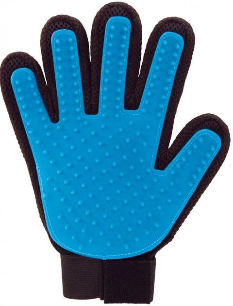 Рукавичка True Touch для вичісування шерсті кішок і собак 20х14 см гума і нейлон (1000047) Синя