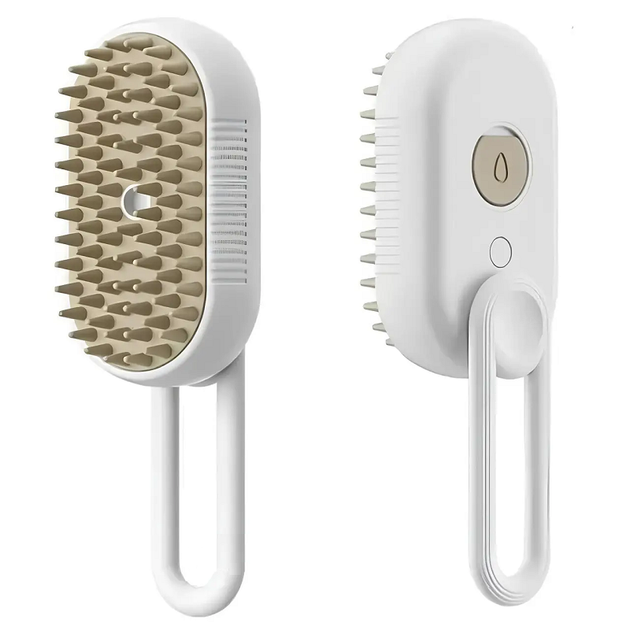 Парова щітка масажер з ручкою Steamy Brush E-W3317 для вичісування собак і котів з паровим розпилювачем біла Китай