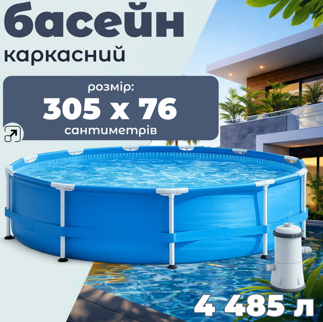 Каркасний басейн Intex 244 x 51 см з каркасом, чашею, фільтром 2006 л/год, тентом та підстилкою