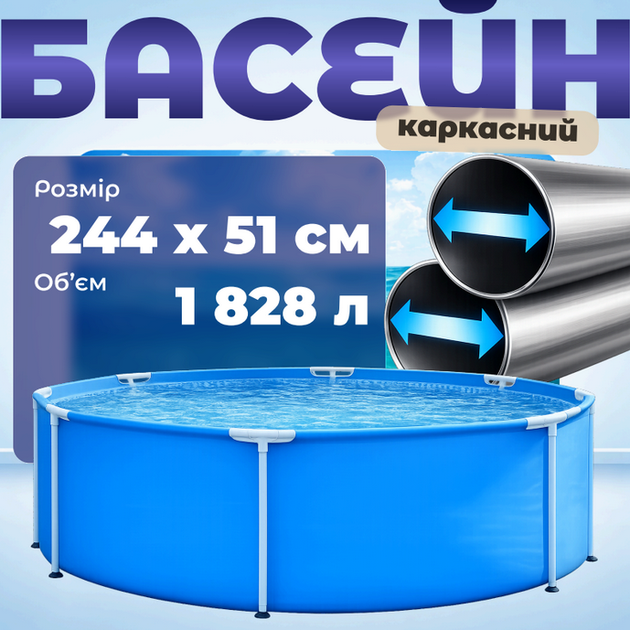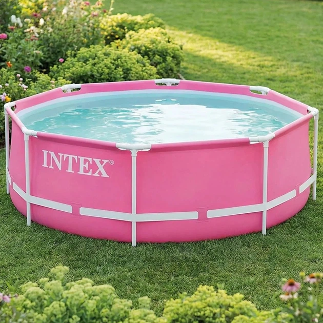 Басейн каркасний Intex 244х76 см рожевий, об’єм 2843 л, круглий садовий басейн для дітей і сім’ї від 6 років