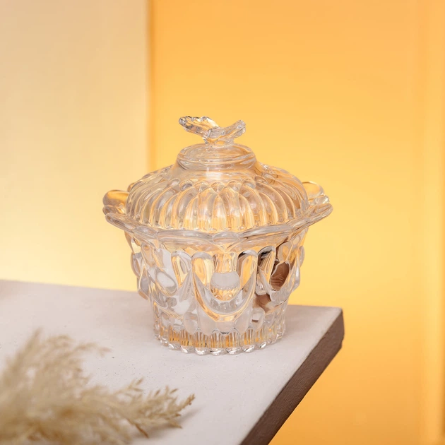 Цукерниця скляна 9 см цукерниця з кришкою прозора