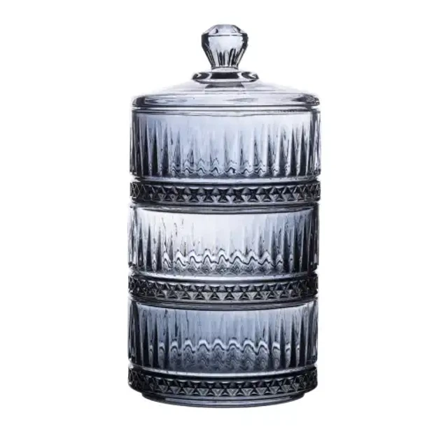Цукерниця з кришкою Yiwu HP-YH-76 трирівнева скляна 20 см Сіра (145-107-HP-YH-76)