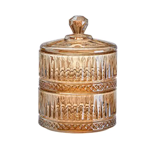 Цукерниця дворівнева з кришкою скляна під хрусталь, коричневий(HP-YH-81)(WB)