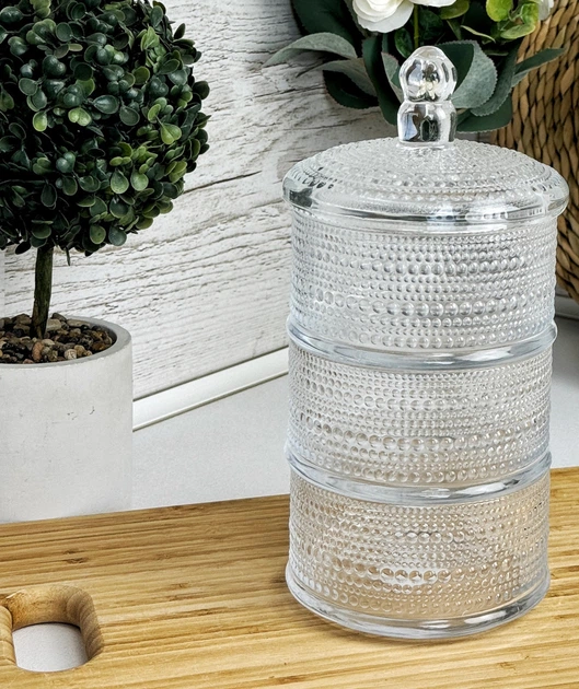Цукерниця трирівнева з кришкою із товстого стекла(HP-YH-22)(WB)