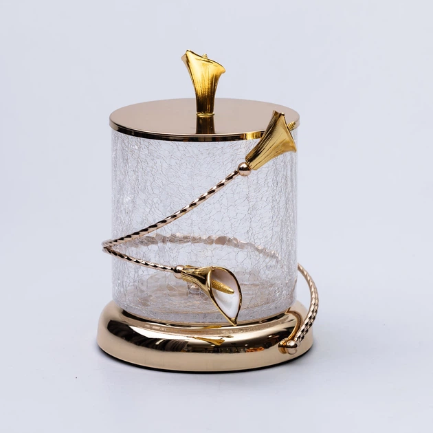 Цукерниця скляна з металевим квітковим декором та кришкою 1420 см