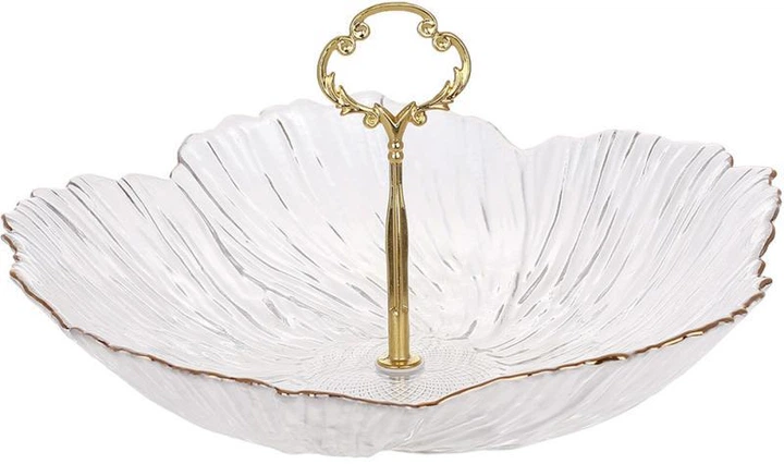 Цукерниця скляна "Flower" 26х6см із ручкою, прозрачна із золотою облямівкою