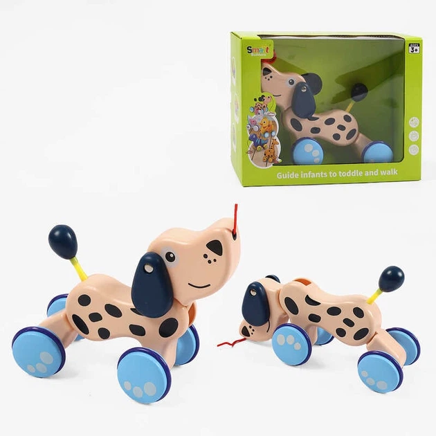 Каталка 338 "Собачка", веревочка, гумові накладки на колесах, в коробці
