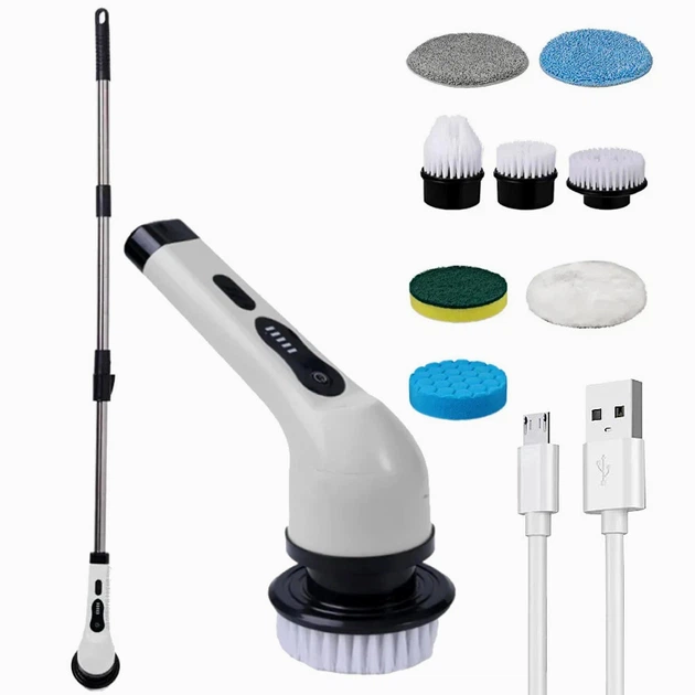 Електрична акумуляторна щітка 9в1 2500мАч телескопічна нержавіюча сталь біла для прибирання