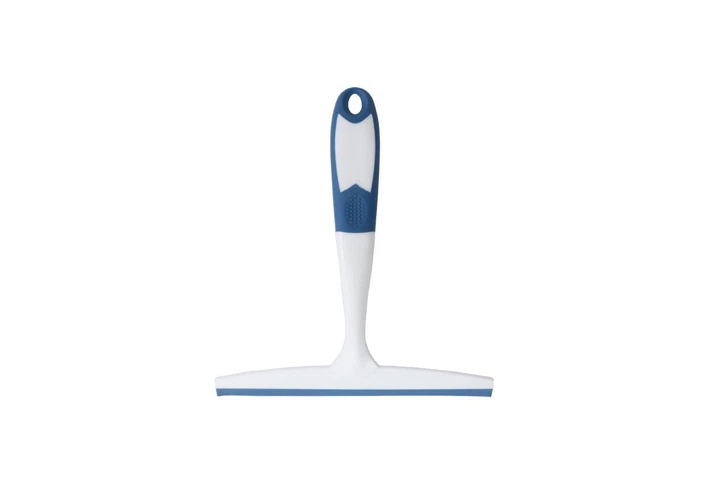 Скребок для миття скла складний з абразивною губкою та гумовим лезом для вікон дзеркал душу Блакитний HP-35015-27BL (A-03524