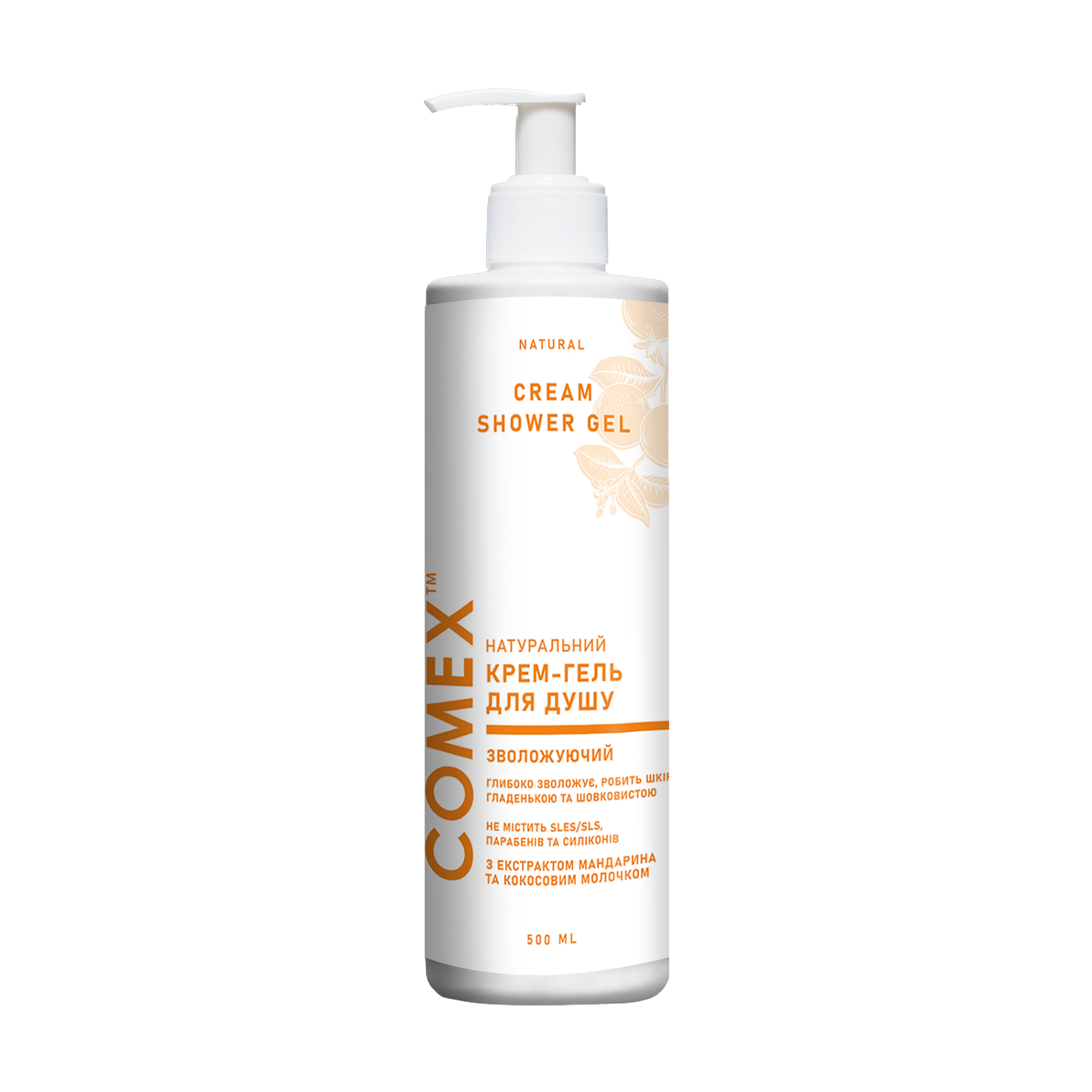 Зволожувальний крем-гель для душу Comex Cream Shower Gel з екстрактом мандарина та кокосовим молочком, 500 мл
