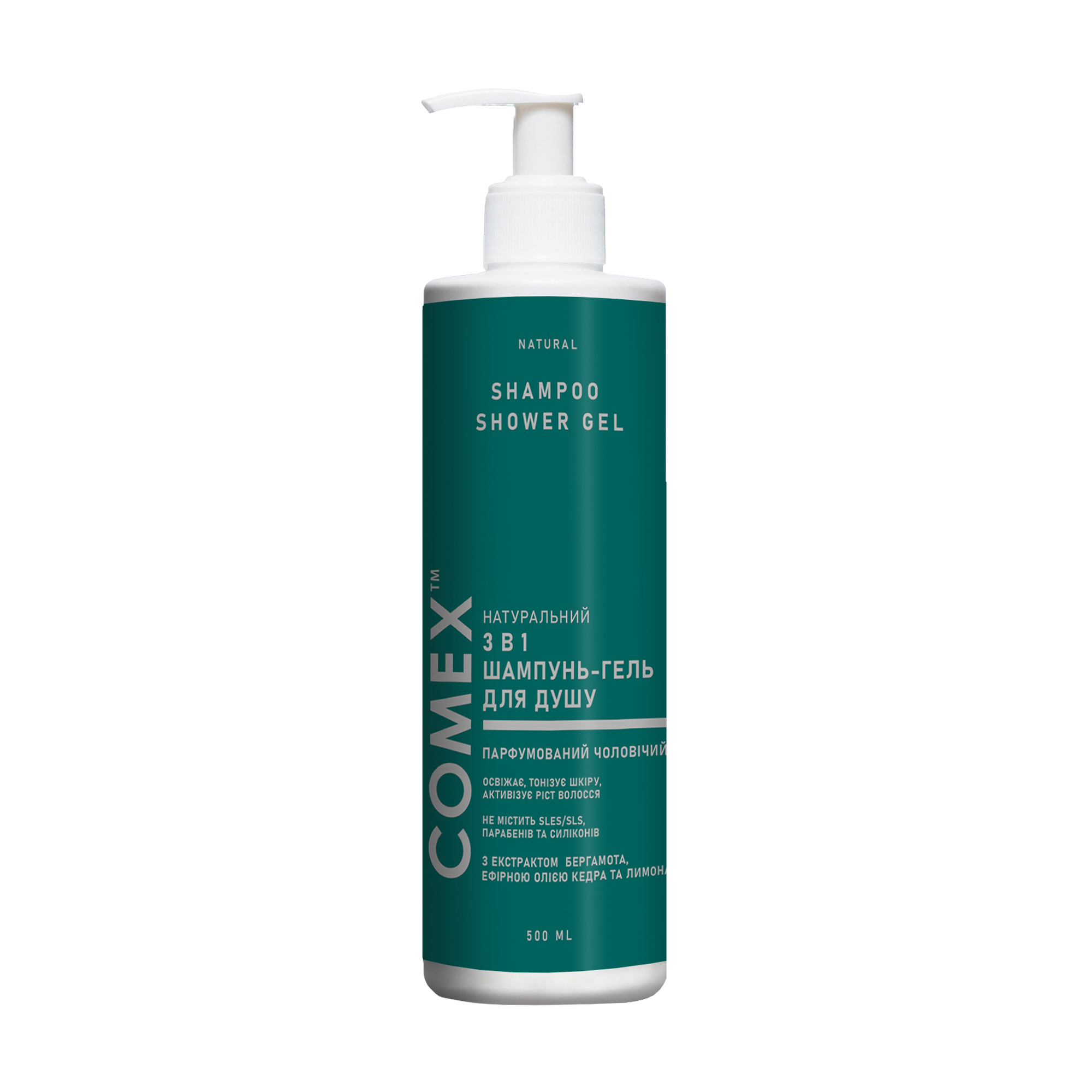 Парфумований шампунь-гель для душу 3 в 1 Comex Shampoo Shower Gel чоловічий, з екстрактом бергамота, ефірною олією кедра та