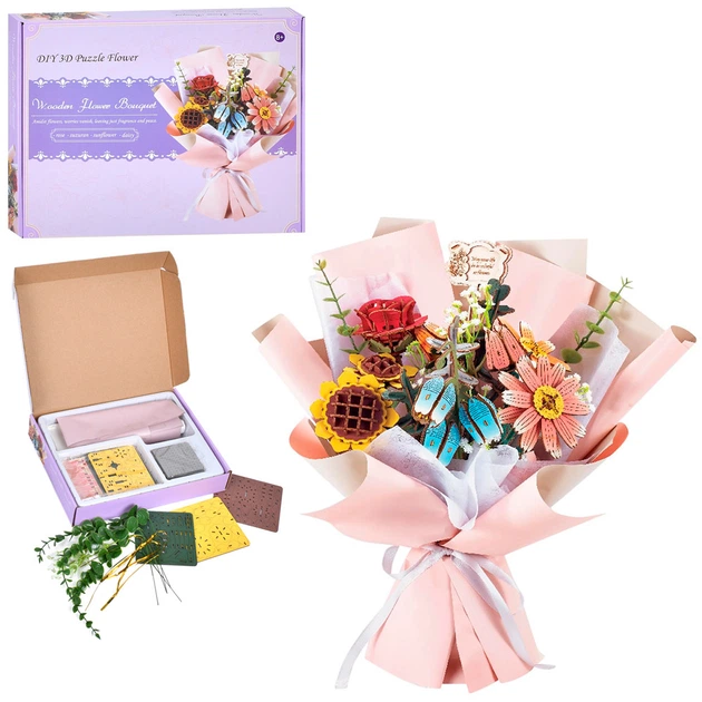 Пазли 3D букет з квітами 384 деталі дерево+пластик, в коробці 29-22,5-5см, 1205