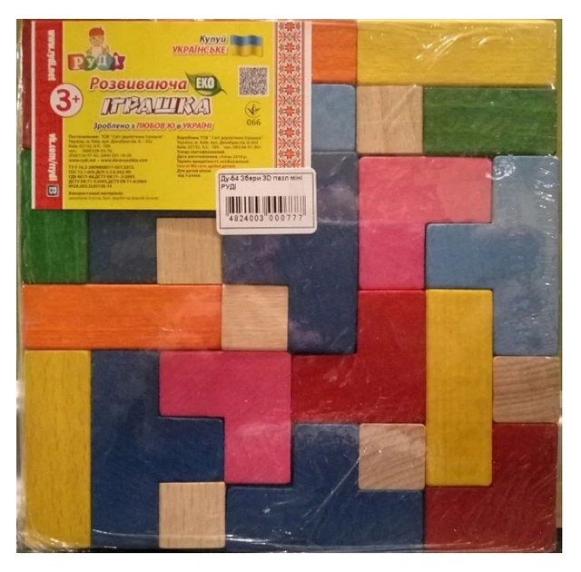 3D пазл дерев'яний Руді "Міні" 24 елементи різнокольорові фігури (Ду-54)