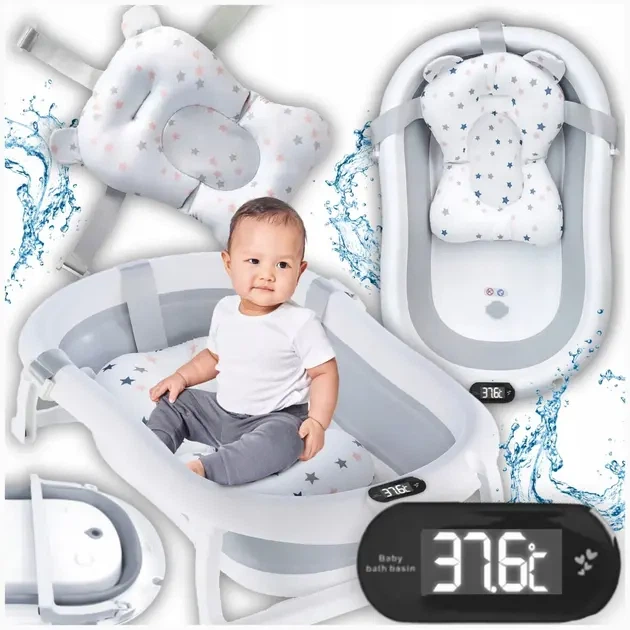 Дитяча ванна для купання складана з термометром та подушкою