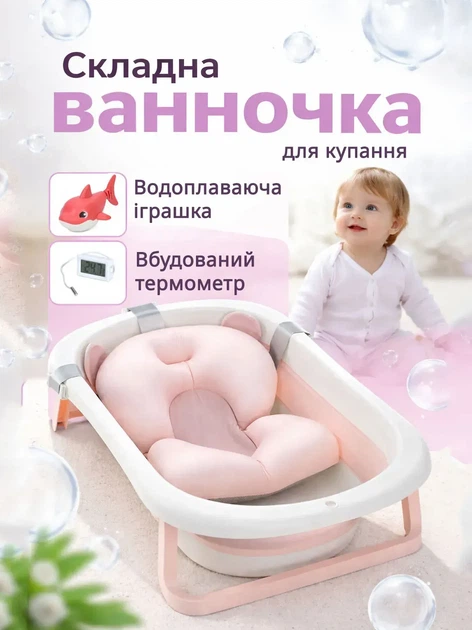 Дитяча ванночка для купання з термометром та подушкою