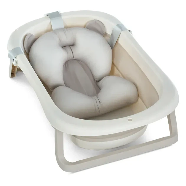 Дитяча ванночка для купання новонародженої дитини немовлят ванна складна з термометром зі зливом і вкладишем подушкою на ніж