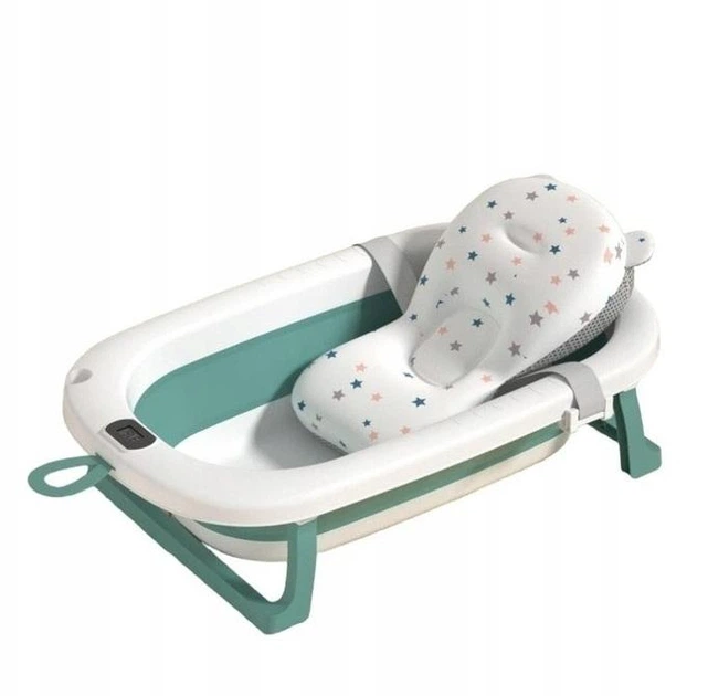 Складна ванночка дитяча з подушкою і термометром зелено-біла