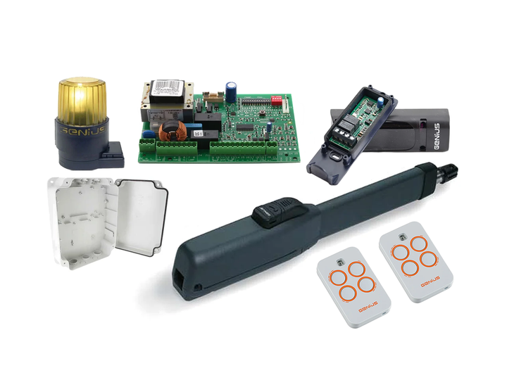 Привід для розпашних воріт FAAC GENIUS SIROCCO 250 стулка до 2,5 м Фотоелементи + лампа + плата з боксом, 2 шт., 1 шт.