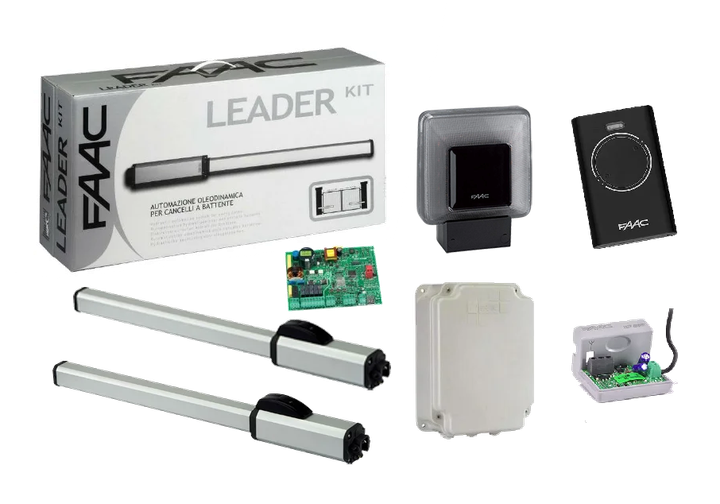 Автоматика для розпашних воріт FAAC 415 LS 24В (стулка 2,5 до 3 м з електромех. кінц.) Фотоелементи + лампа, 2 шт.