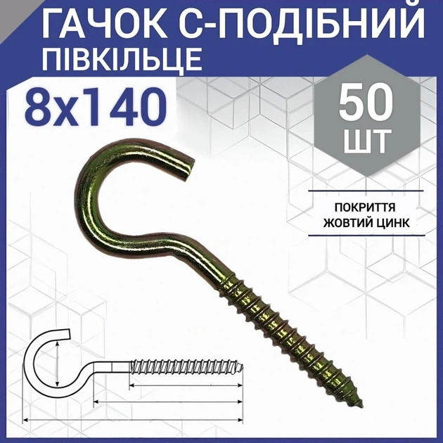 Шуруп з гаком тип С (напівкільце) 8 х 140 мм (50 шт.)