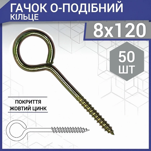 Шуруп із гаком тип О (кільце) 8 х 120 мм (50 шт.)