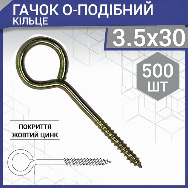 Шуруп з гаком тип О (кільце) 3,5 х 30 мм (500 шт.)