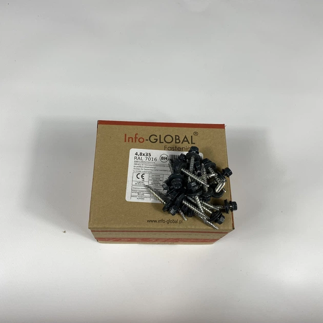 Покрівельні саморізи Info-Global 4,8х35 мм RAL 7016 антрацитово-сірий, антрацит по дереву (250 шт.) з гумовою шайбою EDPM дл