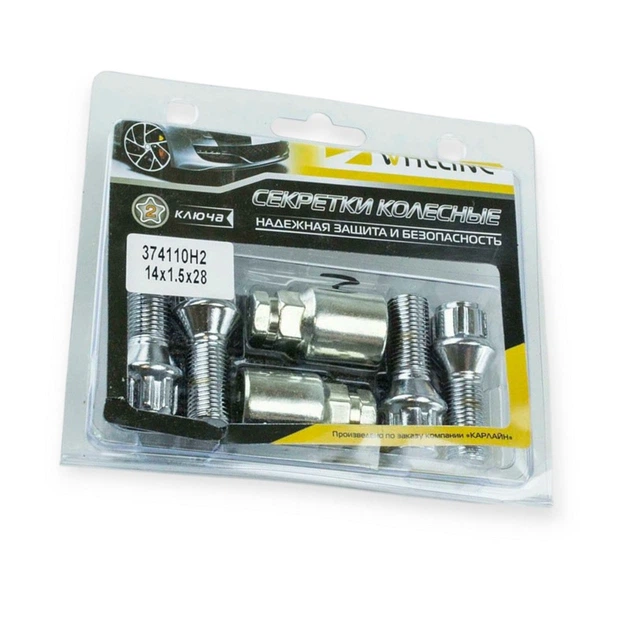 Болт колісний хром 14х28 (ш 1,5) конус, секретки (2ключа)(4шт) Walline