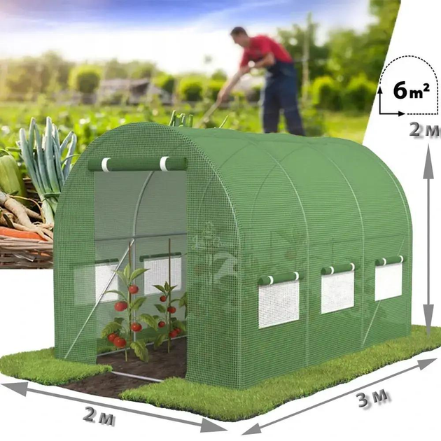 Теплиця-парник 322 м, 6 м, армована тришарова плівка з УФ-фільтром, металевий оцинкований каркас 19 мм, двері на блискавці,
