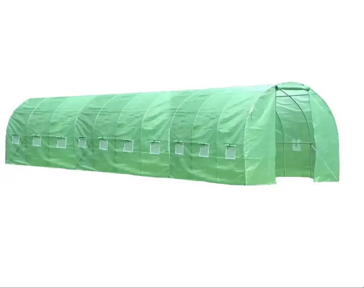 Посилений парник-теплиця тунель 24 м (382 м) з оцинкованим сталевим каркасом 25 мм, армованою тришаровою плівкою PE 140 г/м