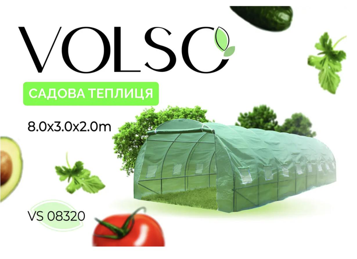 Теплиця, парник армована плівкова 24м2 VOLSO POLSKA VS 08320 з вікнами 8 х 3 х 2 м зелена