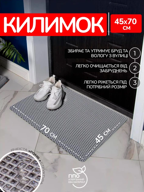 Килимок у передпокій та коридор SmartRoy водонепроникний Cірий 45х70
