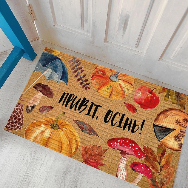 Коврик придверний з принтом Привіт, осінь! Arivans 45х75 оранжевий 451267018