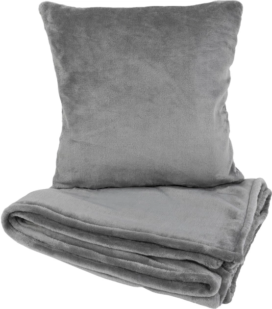 Подушка та плед в авто EVAtech із махри S Сірі (MBLMPSSGG)