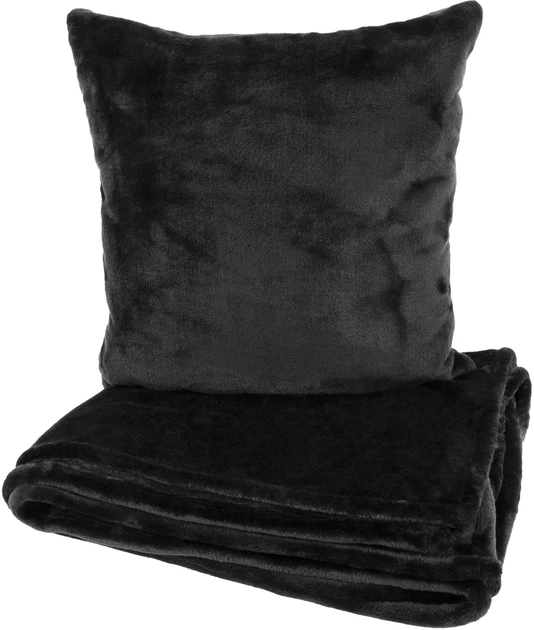 Подушка та плед в авто EVAtech із махри M Чорні (MBLMPSMBB)
