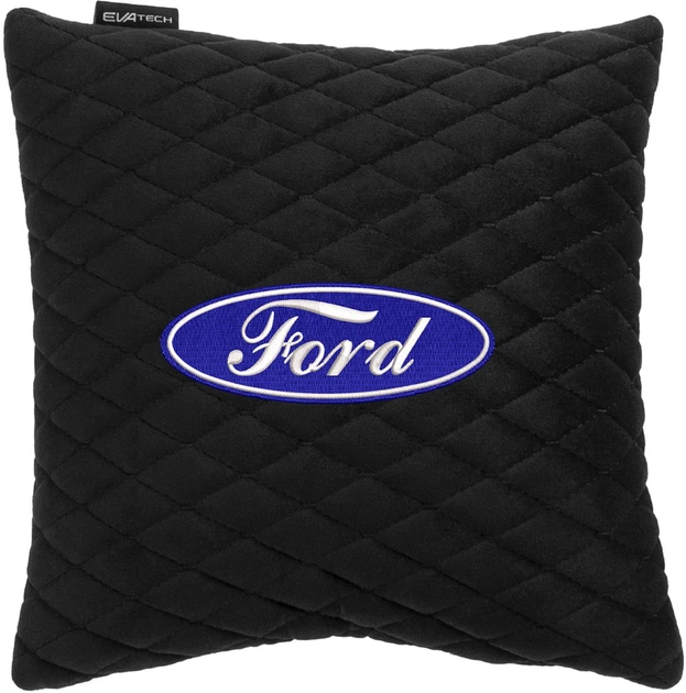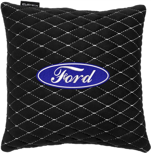 Подушка в авто EVAtech з алькантари 30 x 30 см Ford чорна з білою ниткою малий ромб (SPSALMRBWV010)