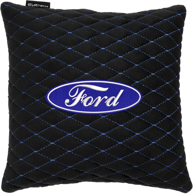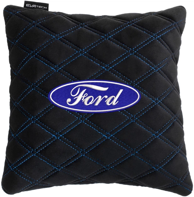 Подушка в авто EVAtech з алькантари 30 x 30 см Ford чорна з синьою ниткою малий ромб (SPSALMRBLV010)
