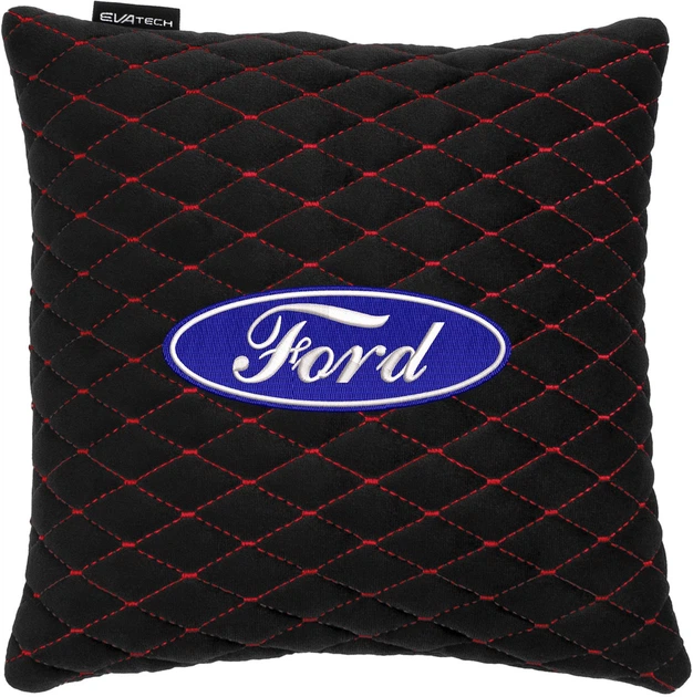 Подушка в авто EVAtech з алькантари 30 x 30 см Ford чорна з червоною ниткою малий ромб (SPSALMRBRV010)