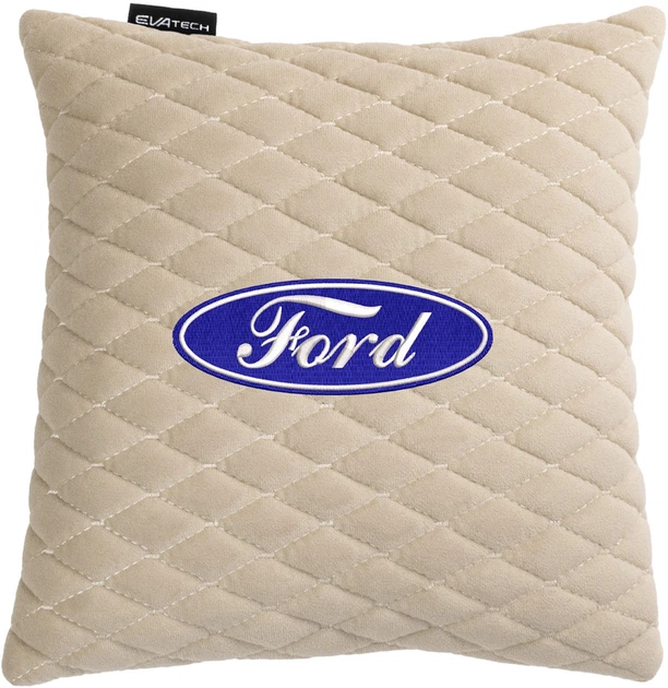 Подушка в авто EVAtech з алькантари 30 x 30 см Ford бежева з бежевою ниткою малий ромб (SPSALMRIIV010)